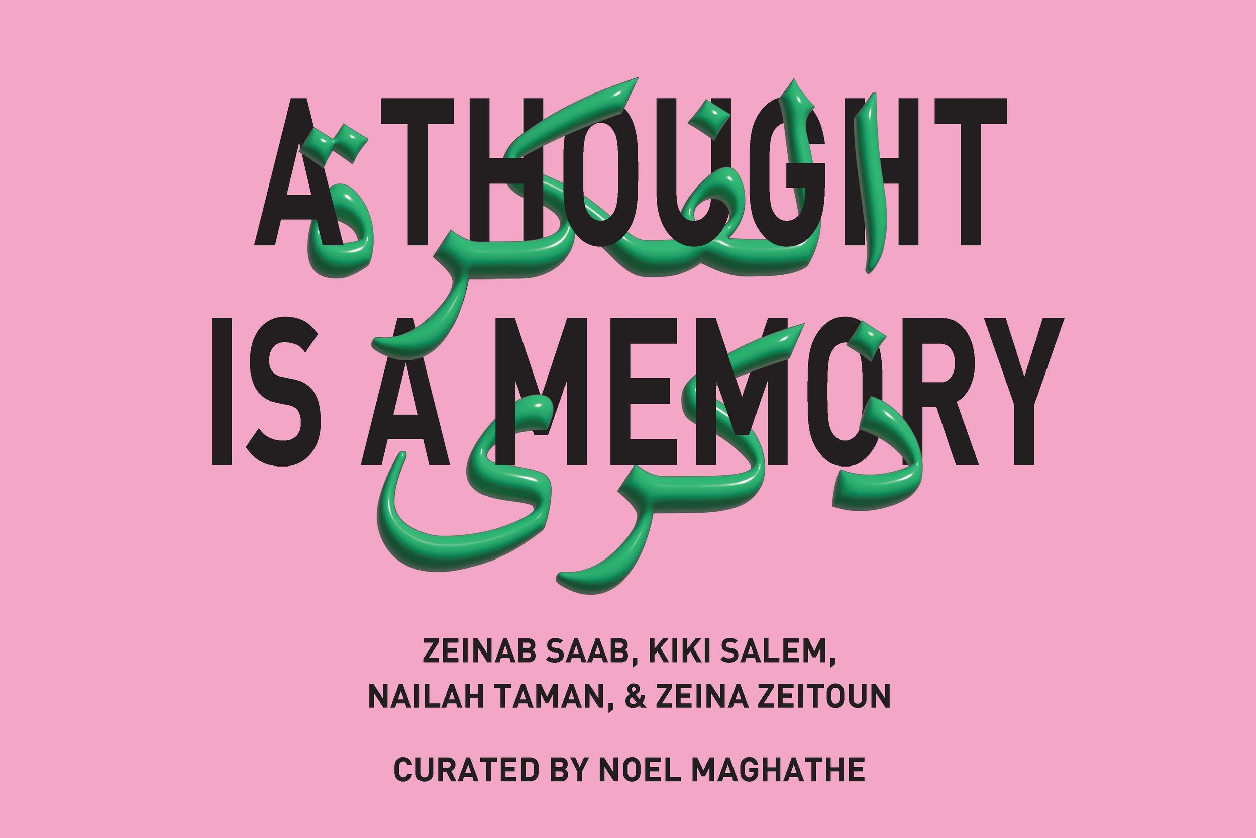 الفكرة ذكرى / A thought is a memory, curated by Noel Maghathe and mentored by Sara Raza with works by Zeinab Saab, Kiki Salem, Nailah Taman, and Zeina Zeitoun. Catalogue essay by Sarah Aziza, mentored by Dina Ramadan. Graphic design by Daleen Saah. Presented by CUE Art Foundation, 2023.