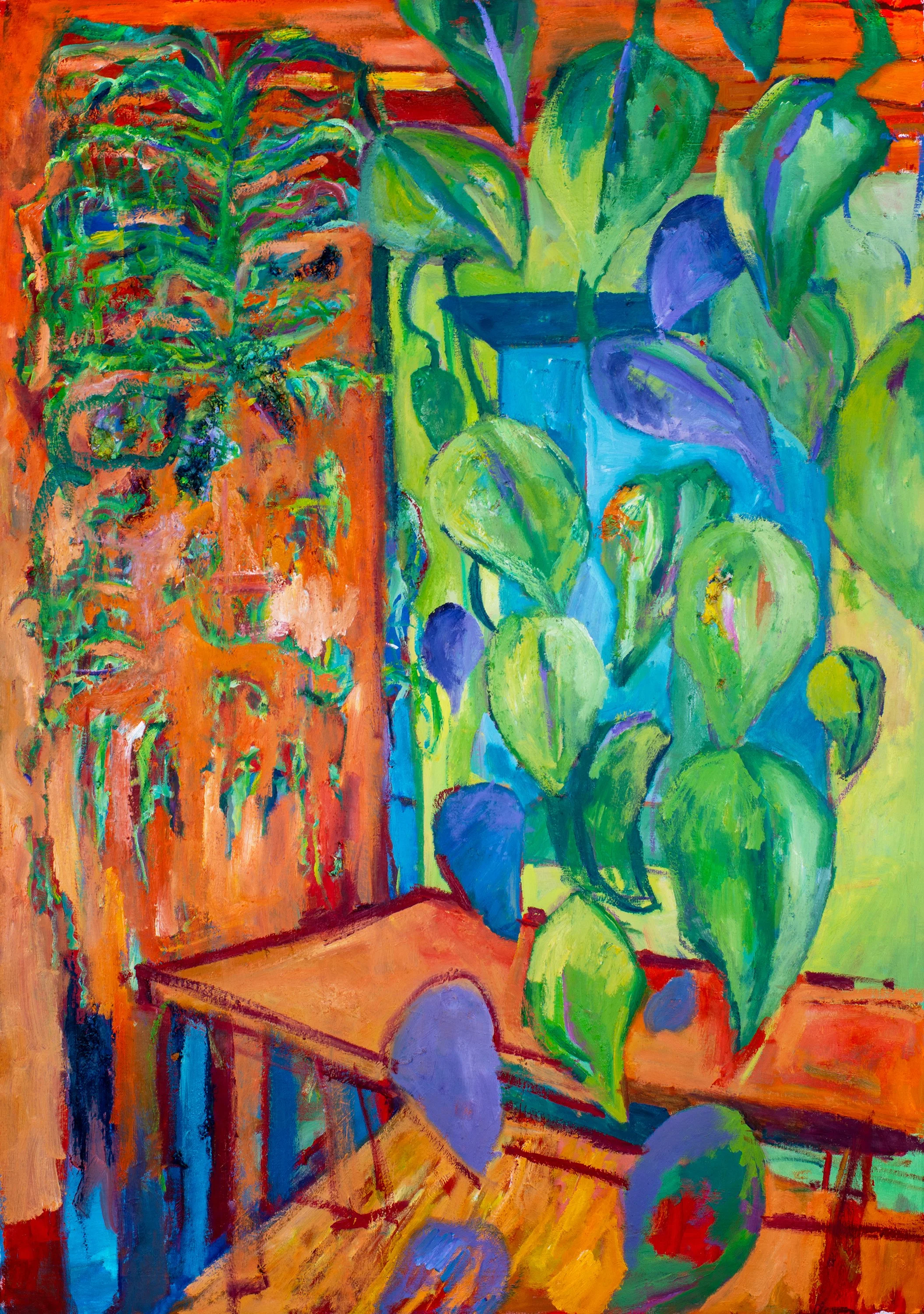 “Botanical beauty and the infinite complexity of nature are central themes in my work. Plants serve as a metaphor for the universe and its secrets, reflecting the protective shell that I seek in my own life. The Fibonacci series and other mathematical concepts inform composition, as I strive to explore different perspectives and ways of understanding the world around me. Through scale, exuberant energy, vibrant colors, and elements of nostalgia and familiarity, I further explore these themes and connections…